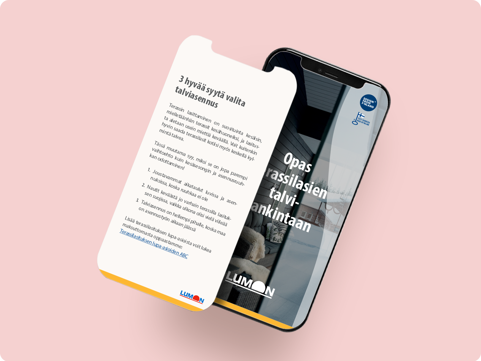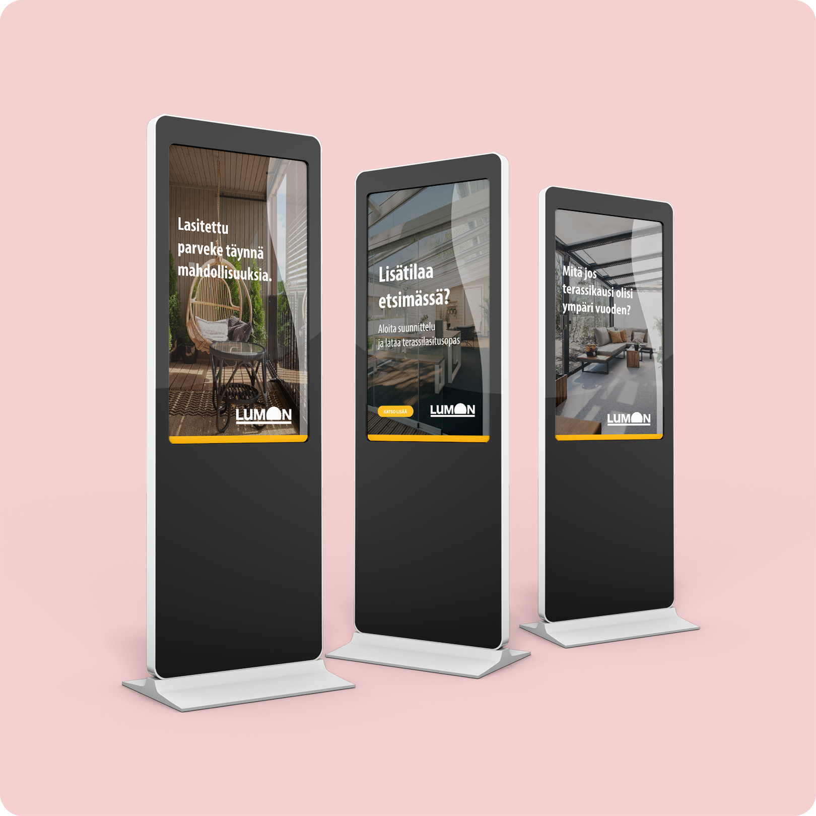 Olen toiminut Lumonin markkinointitiimin apuna usean vuoden ajan tehden Lumonin brändin mukaista mainos- ja markkinointimateriaalia laidasta laitaan – aina painetuista messumateriaaleista animoituun lomakepohjiin ja display-mainontaan.
